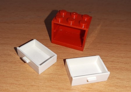 Crveno bela kutija sa fiokama